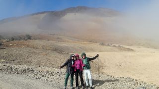 Unser letzter Tag in Tenerifa Wir wandern mitten in den Vulkanen, die Landschaft ändert immer wieder ihre Farben. Von rot über schwarz zu verschiedenen ockertönen. Ganz oben sehen wir das Planetarium. |
