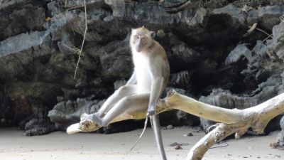 Unser erster Tag am Strand von Ao Nang und schon holen uns die Affen. In