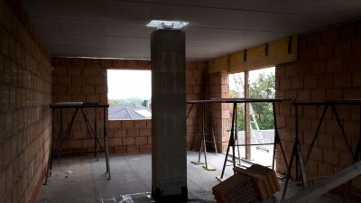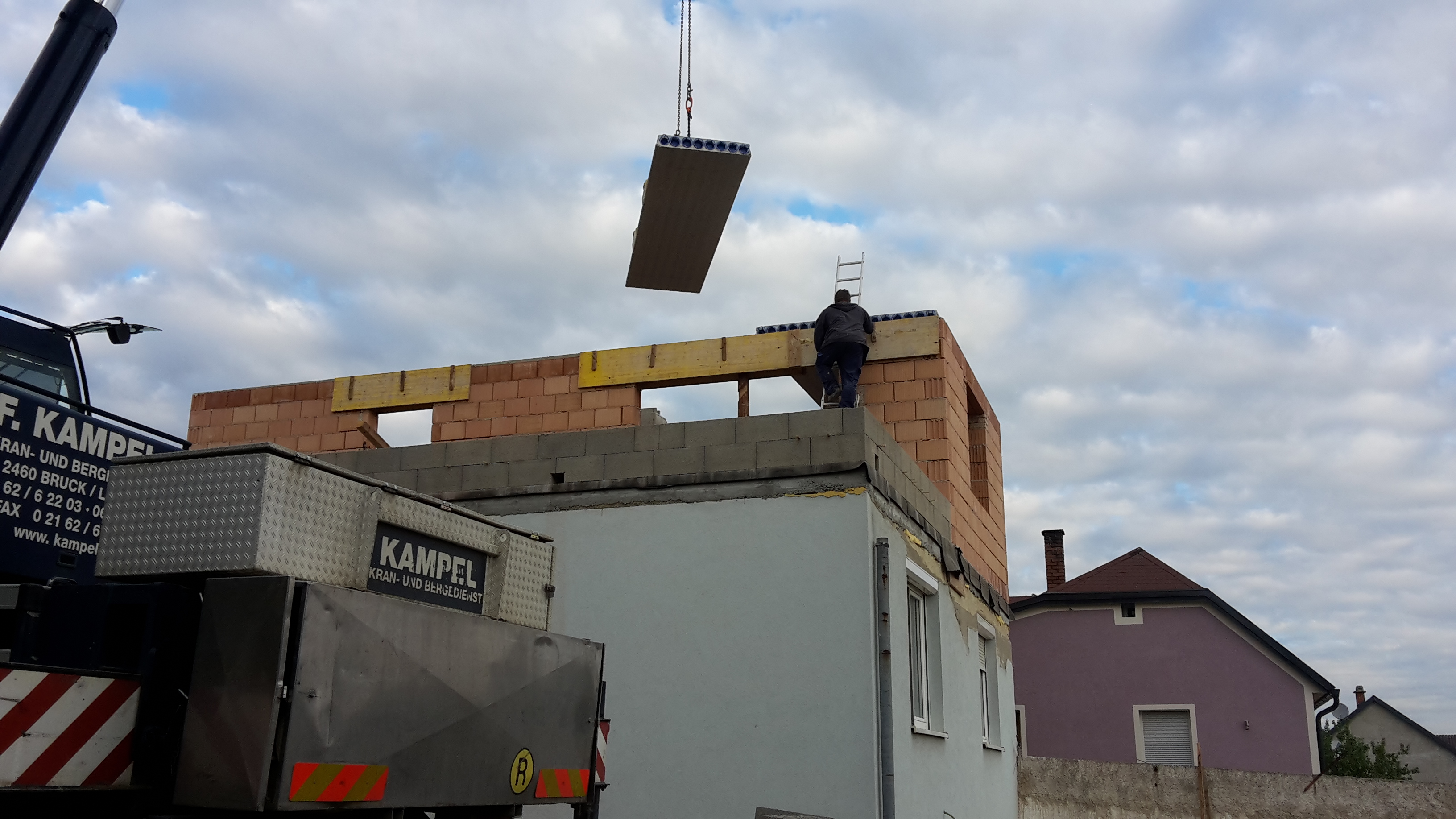 Heute morgen wurde das neue Geschoß abgedeckt - bald sind wir wetterfest.