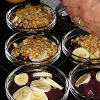 Acai ist ein Sorbet aus der Frucht der Acai Palme. Es schmeckt ein wenig herb und wird mit Bananen, Knuspermüsli und Honig serviert.