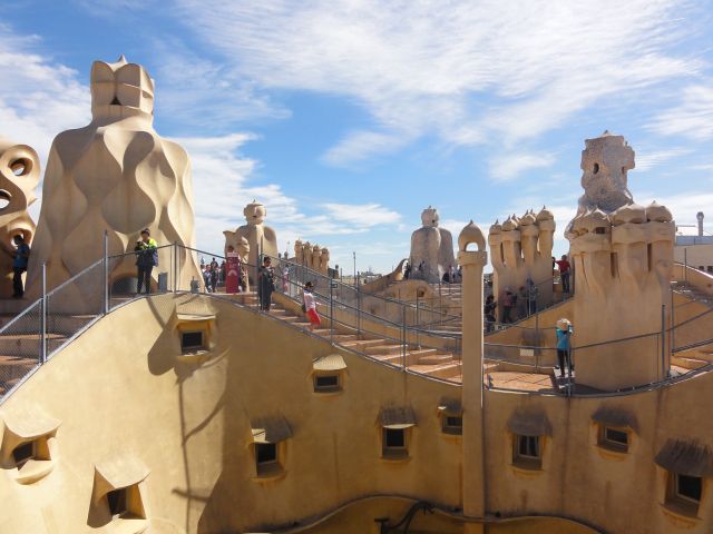 ch anmutende Haus wird von den Einheimischen „La Pedrera“ („Der Steinbruch“) bekannt. Diese Bezeichnung verdankt es seiner unregelmäßigen Fassade mit den vielen Vorsprüngen und seiner wuchtigen Masse, die schon von weitem ins Auge fällt. Casa Milà war der letzte Profanbau Gaudís, bevor er sich auf das Kirchengebäude Sagrada Família konzentrierte. Das Gebäude wurde 1984 von der UNESCO als erstes Gebäude des 20. Jahrhunderts zum Weltkulturerbe erklärt. Beeindruckend ist die riesige Dachterrasse mit Fernblick und künstlerisch gestalteten Belüftungsschächten. Die durchdachte natürliche Belüftung macht Klimaanlagen überflüssig. Im Haus befinden sich Büros und Wohnungen.