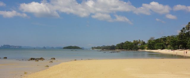 Den Tipp mit Ao Nang/Krabi hatten wir von unserem Freund Norbert. Das Hotel hat er uns vorgebucht. Seine Bekannte Kik empfängt uns herzlich, und begleitet uns mit wertvollen Tipps. Bei ihr haben wir eine 4-Insel-Tour gebucht (sooo viele Leute haben dasselbe getan) und ein Moped ausgeliehen, damit wir an einen einsamen Strand kommen. Den haben wir auch wirklich gefunden: ein Traum.