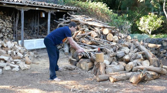 Andreas hat sich auch ein bisschen geübt im Holzhacken - wirklich harte Arbeit!