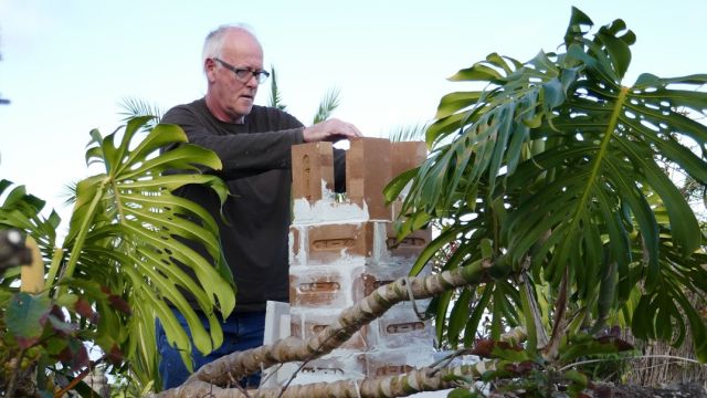 Inzwischen mauert Ernst an einem Schornstein. Offensichtlich kommt ihm hier seine Laufbahn am Bau zugute ![]()