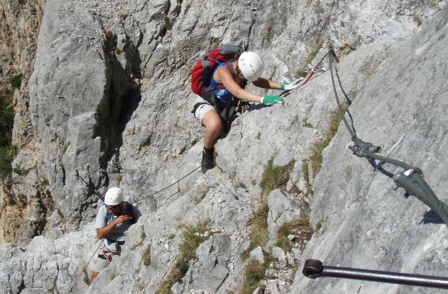 10.09.2011: Alice, Andrea und Silvia klettern am "einfachen" aber kaum versicherten Preinerwandsteig (Schwierigkeit A/B) auf die Rax.