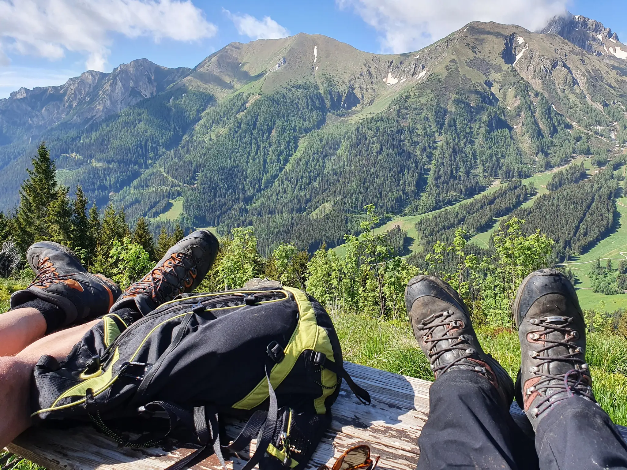 Gerastet haben wir in der urtümlichen Leobner Hütte, wo unser hervorragender Kaiserschmarren noch am Holzofen zubereitet wurde! Dazu ein gspritzer Most - wunderbar!!!