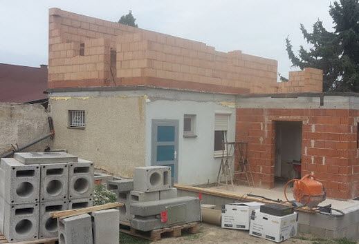 Das alte Dach wurde abgenommen, das neue Geschoß aufgemauert,