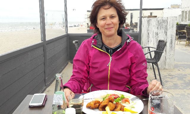 Die Sonne geht hier erst gegen Mitternacht unter, wir sitzen bis spät Abends in einem romantischen Strandlokal und genießen unseren "Kibbeling".