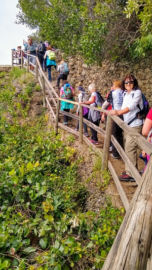 Als der Tourismus in der Chinque Terre begann, gab es zwischen den 5 Dörfern jeweils Wanderwege. Von jedem Dorf hinauf über die Höhe und im nächsten Dorf wieder hinunter. Von diesen Wegen ist nur die Wanderung zwischen Monterosso al Mare und Vernazza übriggeblieben. Alle anderen Wege sind nicht mehr begehbar. Wegen Hangrutschungen und teilweise auch wegen Felsblöcken. Über Jahrhunderte haben die Bauern die Hänge durch Trockenmauern terrassiert und bepflanzbar gemacht. Vor allem mit Weinreben und Gemüse. Dabei wurden natürlich auch die Terrassen gepflegt. Diese Arbeit war sehr beschwerlich. Dann kamen die Touristen, und damit ließ sich natürlich leichter das Einkommen sichern. Die Pflege der Hänge wurde aufgegeben und die Natur schlug zurück. Inzwischen gibt es wieder Bestrebungen, diese Entwicklung rückgängig zu machen. Es hängt ja alles zusammen: Keine begehbare Natur – keine Touristen.