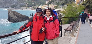 Es hatte die ganze Nacht geregnet und wir haben in Vernazza einige Zeit gewartet, bis die Wege etwas getrocknet waren. Die Wanderung zwischen Vernazza und Monterosso war wunderschön, aber auch anspruchsvoll. In Monterosso hatten wir für die Besichtigung Zeit. Das ist ebenfalls ein total liebreizender Ort. Claudia und ich finden ein nettes Lokal. Inzwischen haben wir alle Hunger. Auch zwei Weißweine verkosten wir.