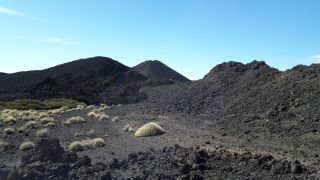 Unser letzter Tag in Tenerifa Wir wandern mitten in den Vulkanen, die Landschaft ändert immer wieder ihre Farben. Von rot über schwarz zu verschiedenen ockertönen. Ganz oben sehen wir das Planetarium. |