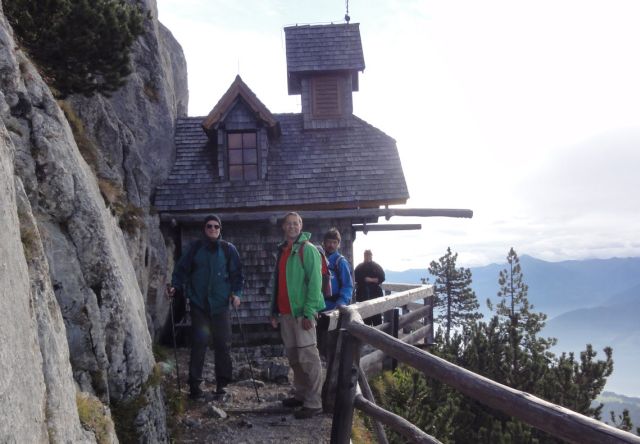 Dann gehts steil bergauf. Über einen Steig (Markierung "Nur für Schwindelfreie") erklimmen wir den Gipfel. Ein paar Schneeflecken zeugen davon, dass das Wetter hier nicht immer so lieblich ist wie heute.